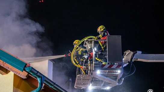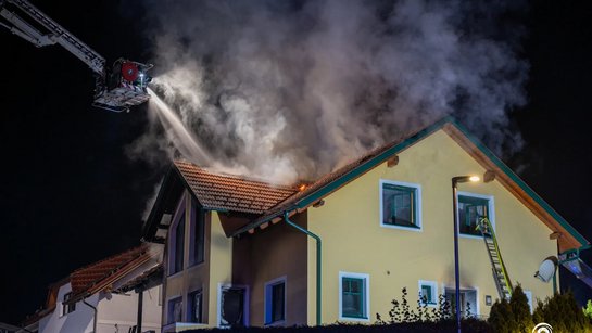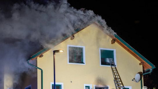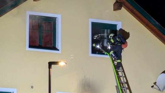 Zum Brand eines Einfamilienhauses kam es in der Nacht auf Dienstag in Tragwein. Eine Frau konnte dabei in letzter Sekunde von der FF Tragwein über eine Leiter aus dem Obergeschoss gerettet werden.