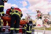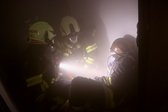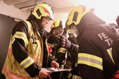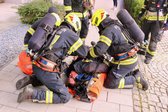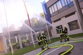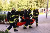Ein weiterer Schwerpunkt war ein simulierter Atemschutznotfall: Ein Träger wurde bei der Verpuffung schwer verletzt und musste von seinen Kameraden gerettet werden.